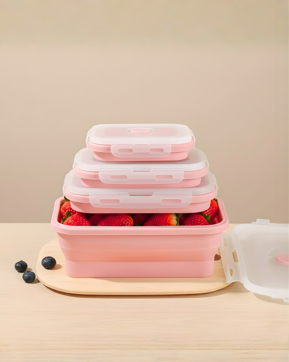 El Recipiente Plegable 4 en 1 es la solución perfecta para mantener tu cocina organizada sin ocupar espacio. Fabricado en silicona hermética y resistente, se adapta a tus necesidades de almacenamiento y es ideal para llevar alimentos al trabajo, picnic o gimnasio.